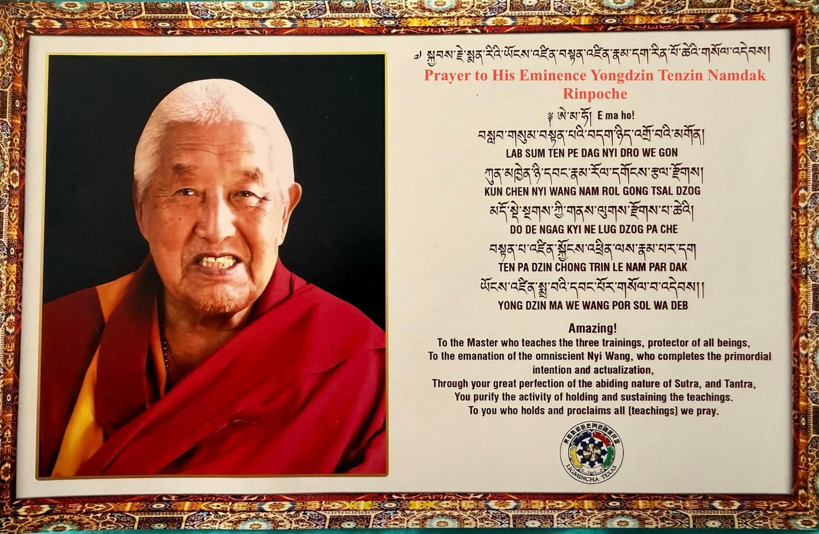 In the year 2025, our benevolent root lama, His Eminence, the supreme Menri Yongdzin Tenzin Namdak Rinpoche, attained the body of enlightenment. On the first day of the Tibetan New Year, we request that you recite the Prayer to Yongdzin Rinpoche, then meditate and receive the blessings from his enlightened body, enlightened speech, and enlightened mind to your body, speech, and mind.